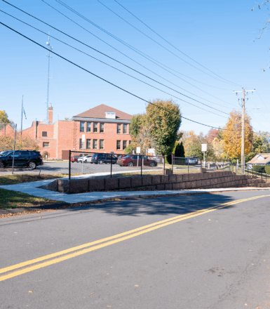 | Streetscape and roadway improvements | Added a retaining wall, converted an unused road segment into green space, and coordinated all work within CTDOT right-of-way. |