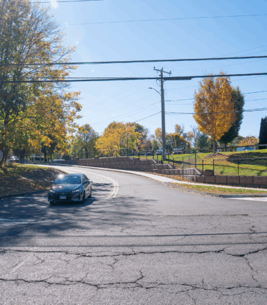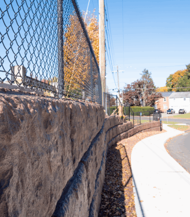 The project also included the design of a retaining wall along the roadway to address grading challenges associated with the new alignment. All work was performed within the Connecticut Department of Transportation (CTDOT) right-of-way, requiring close coordination and an encroachment permit from the agency.