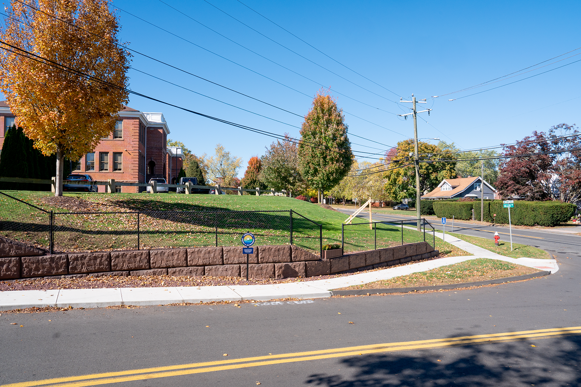 As part of the improvements, Haley Ward realigned the intersection of Allen Road and West Street, which previously entered at a steep angle that limited sight distance and made turning movements, especially for larger vehicles, difficult. The new design allows Allen Road to intersect West Street perpendicularly, improving visibility and overall traffic safety. Additionally, an unused section of Lincoln Street was abandoned and converted into green space, transforming it into a small park area and improving the overall aesthetics of the neighborhood.